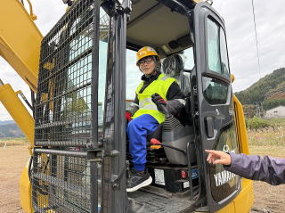 はじめは体の何十倍も大きな重機に緊張する姿が見て取れましたが、慣れてくるととても楽しそうに操作をしていました。安全に気を配りながら、現場で働く機械の迫力と楽しさを感じてもらうことができました。